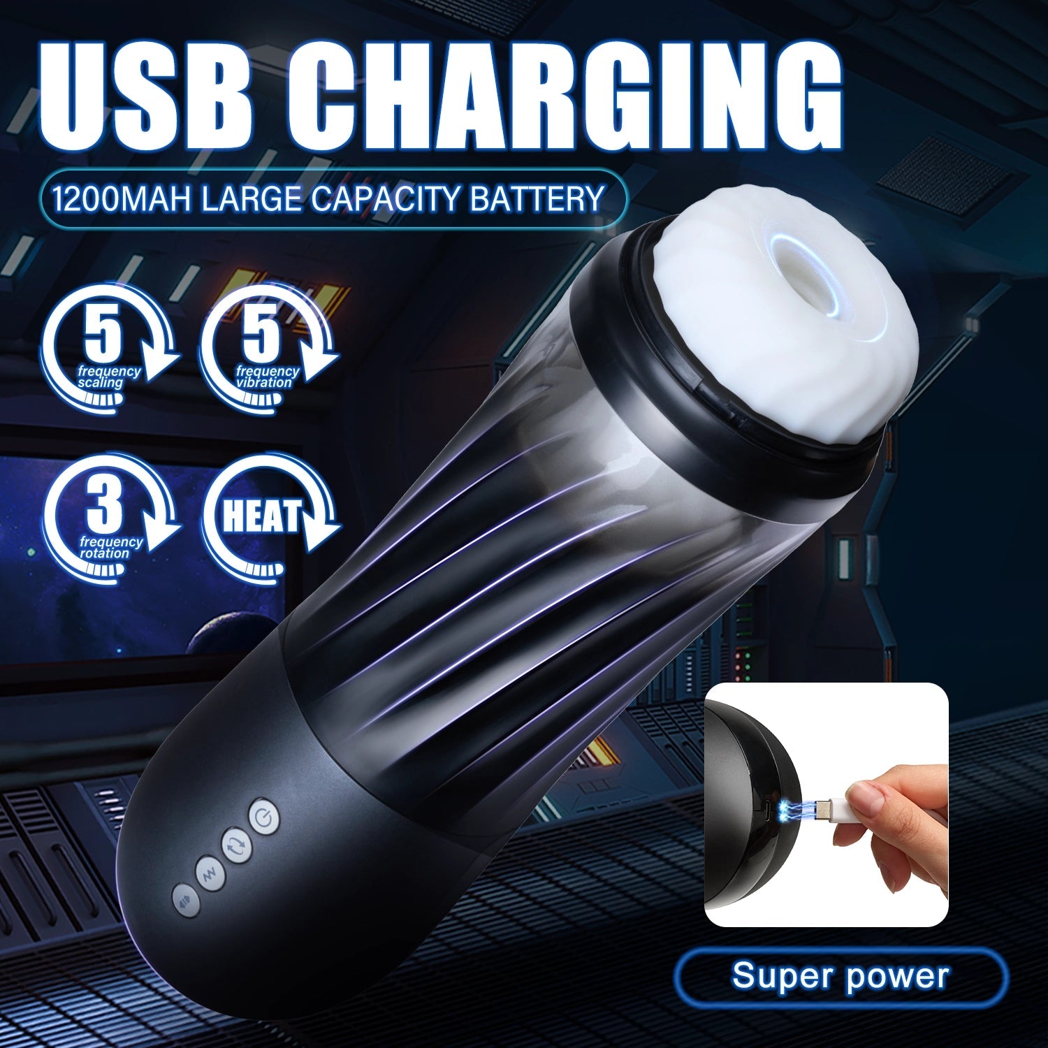 Rocket Adult Male Sex Toy - 3 Twist & 5 Thrust Modes, Hands-Free Heated